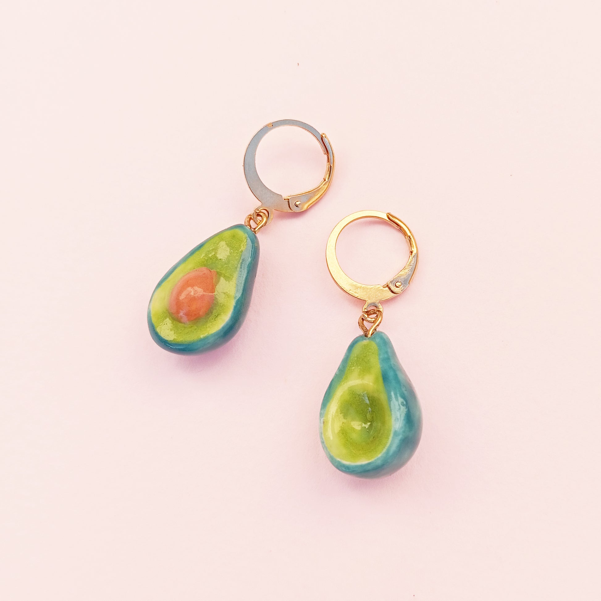 Part of TUTTI FRUTTI collection, this tiny porcelain avocado earrings capture The fresh, creamy essence of everyone's favorite green fruit.