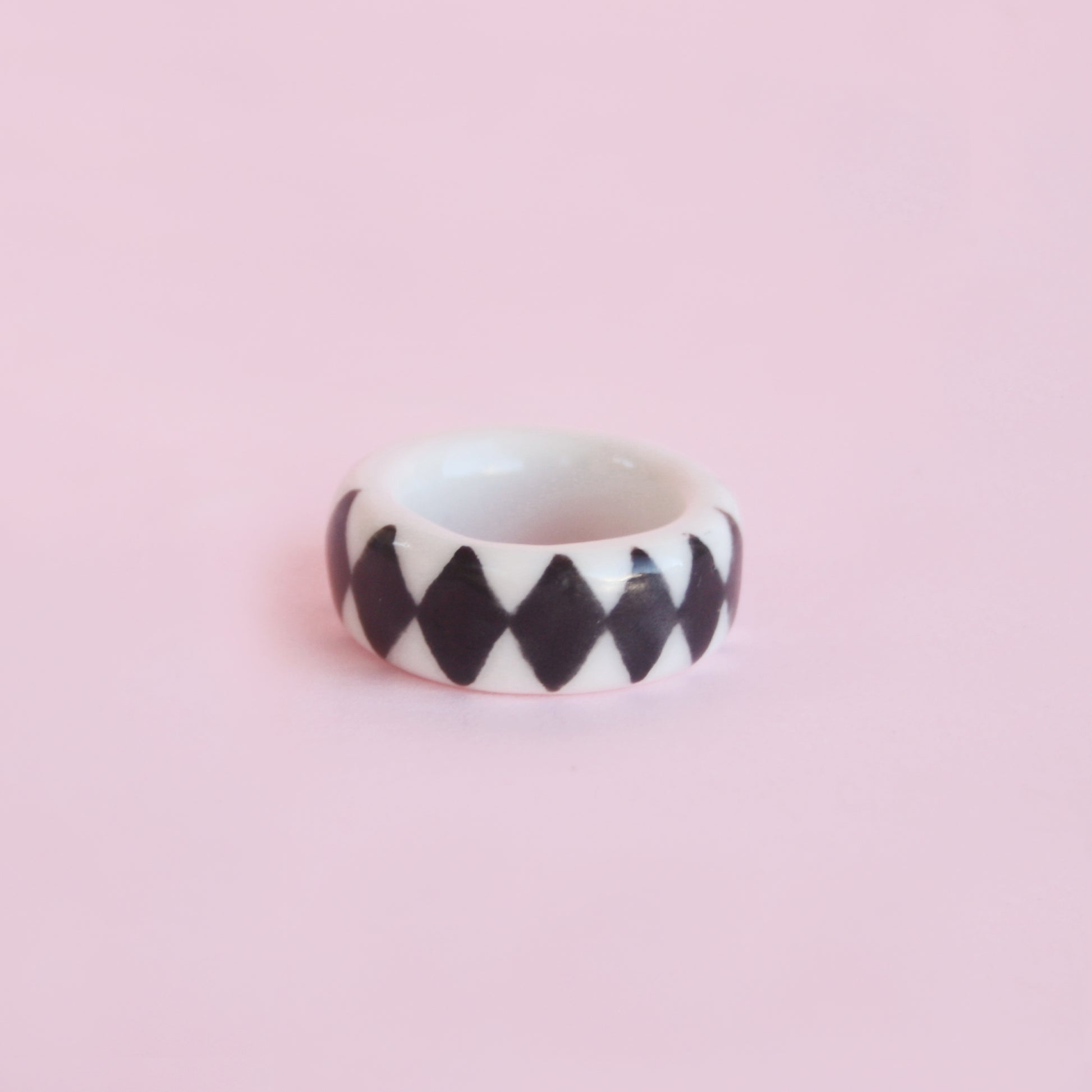 The ring was hand formed in porcelain, painted, glazed and fired twice up to temperature of 1240 C degrees.