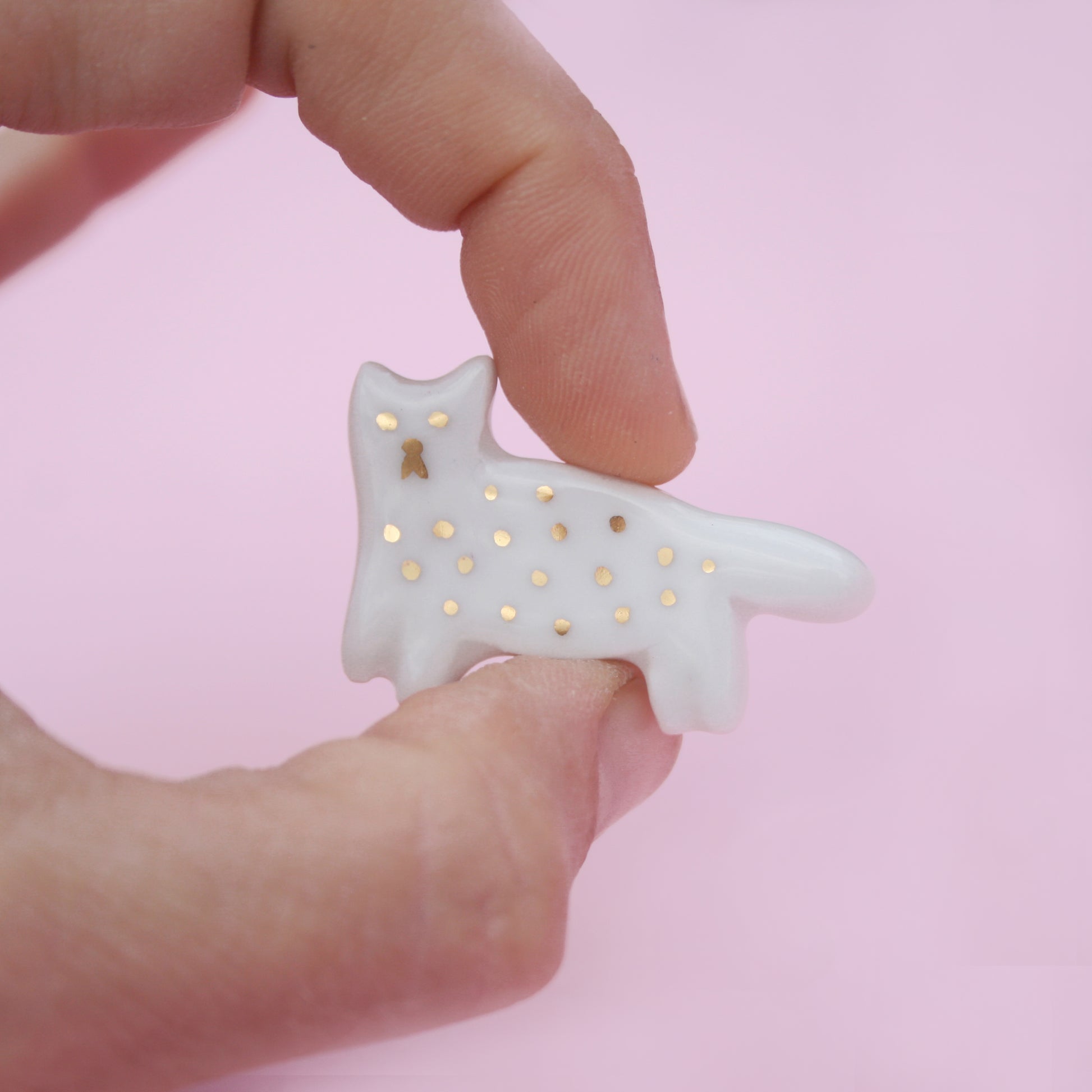 It was hand formed in porcelain, painted and fired twice up to temperature of 1240 C degrees. Additonally decorared with real gold lustre and fired for the third time.