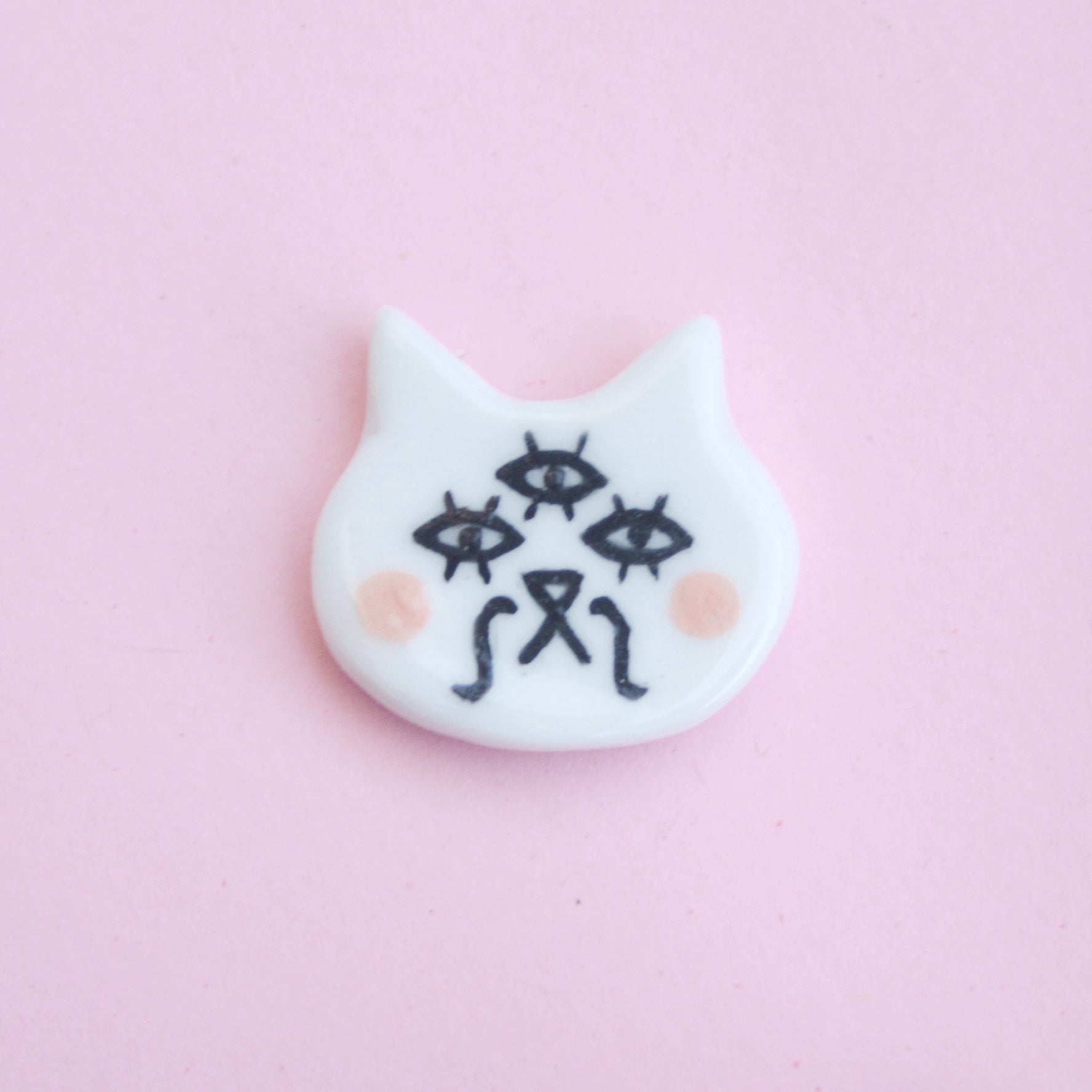 CAT PIN / WHITE - PORCELAIN BROOCH