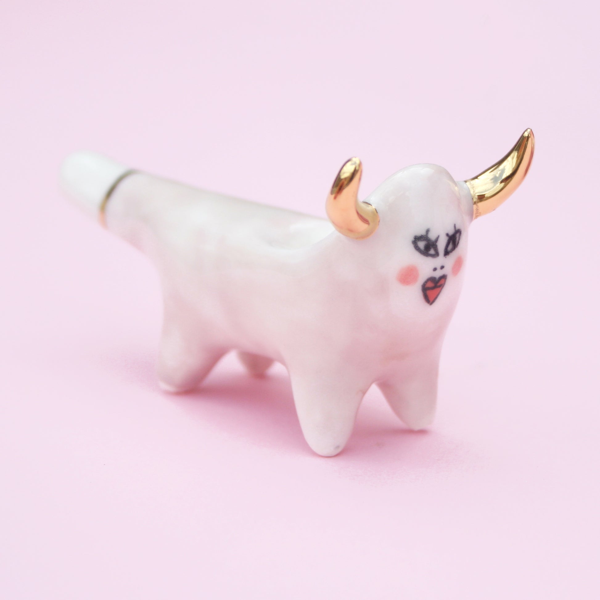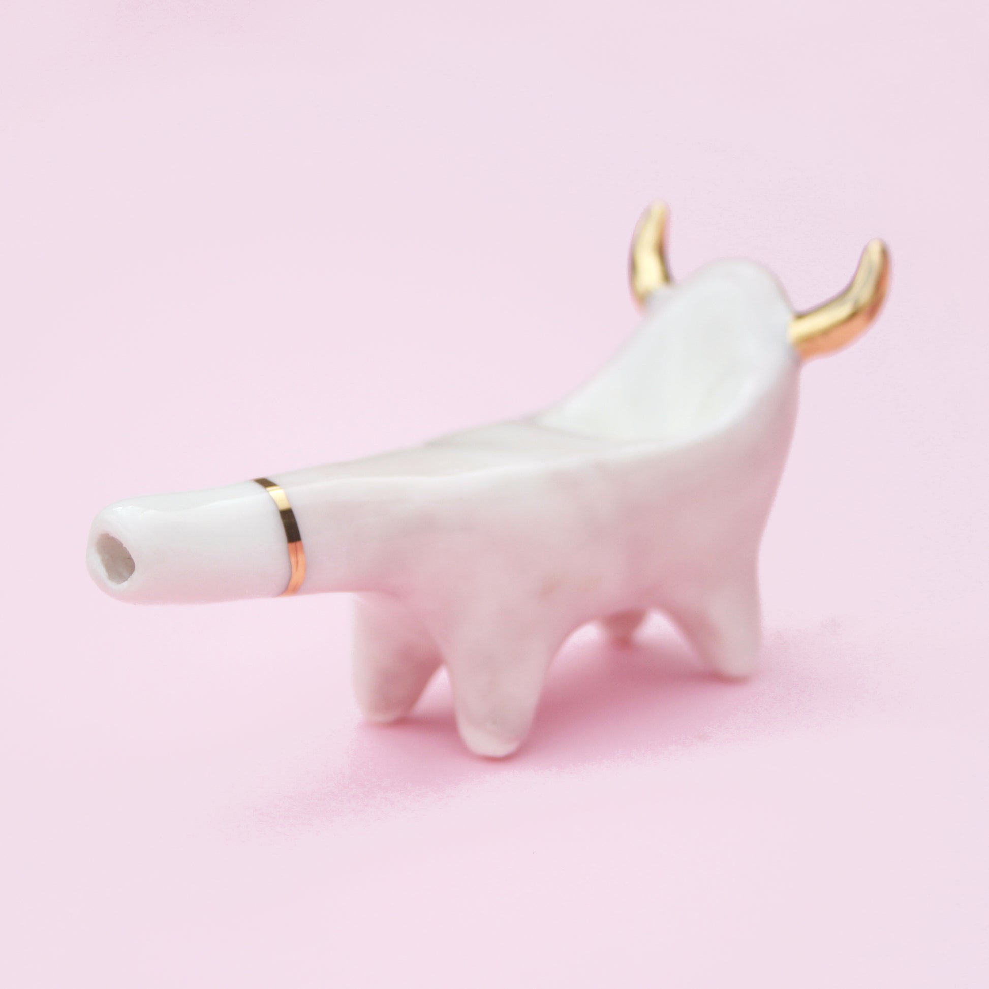 Ceramic smoking pipe resembling bull might be a perfect gift for your Taurus stoner friend or any rebel spirit with horns!