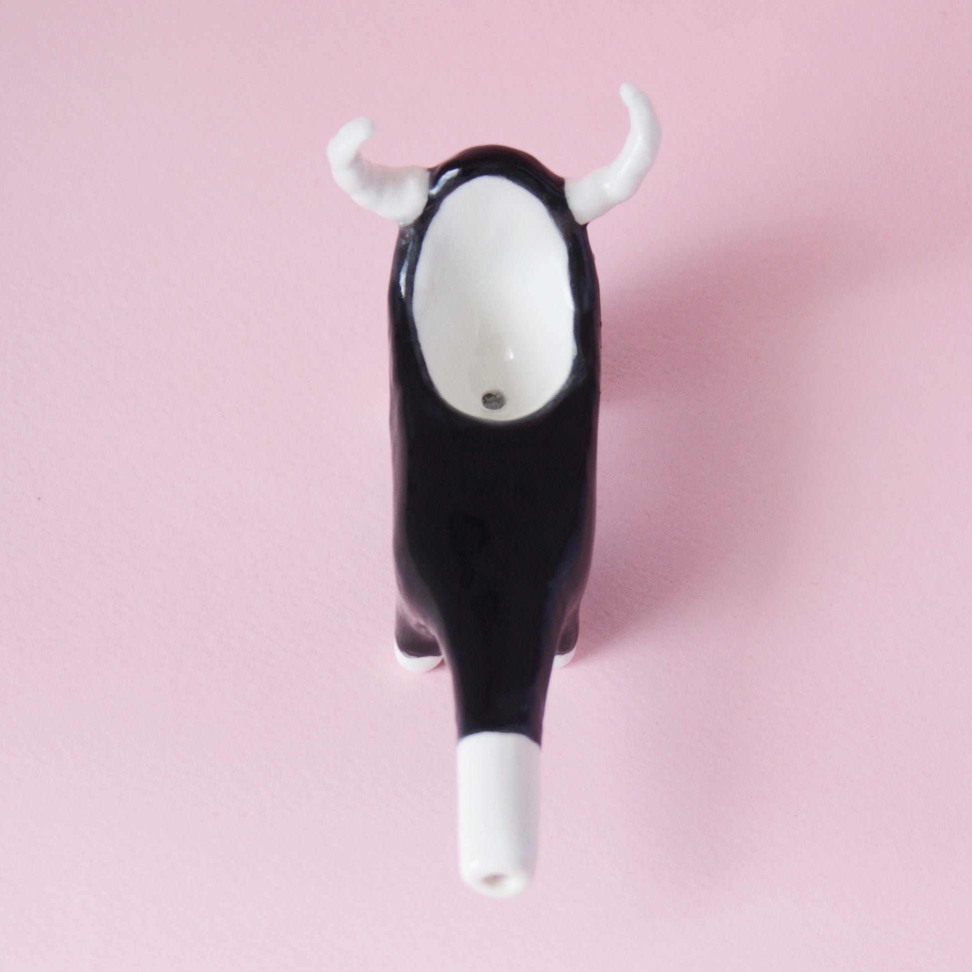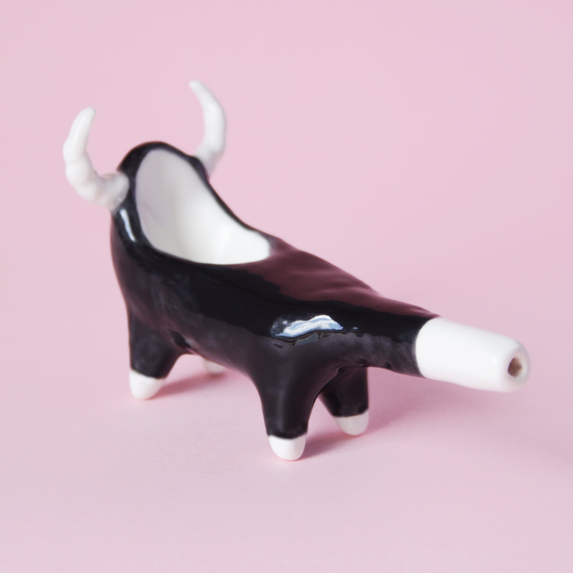 Ceramic smoking pipe resembling black bull might be a perfect gift for your Taurus stoner friend or any rebel spirit with horns!