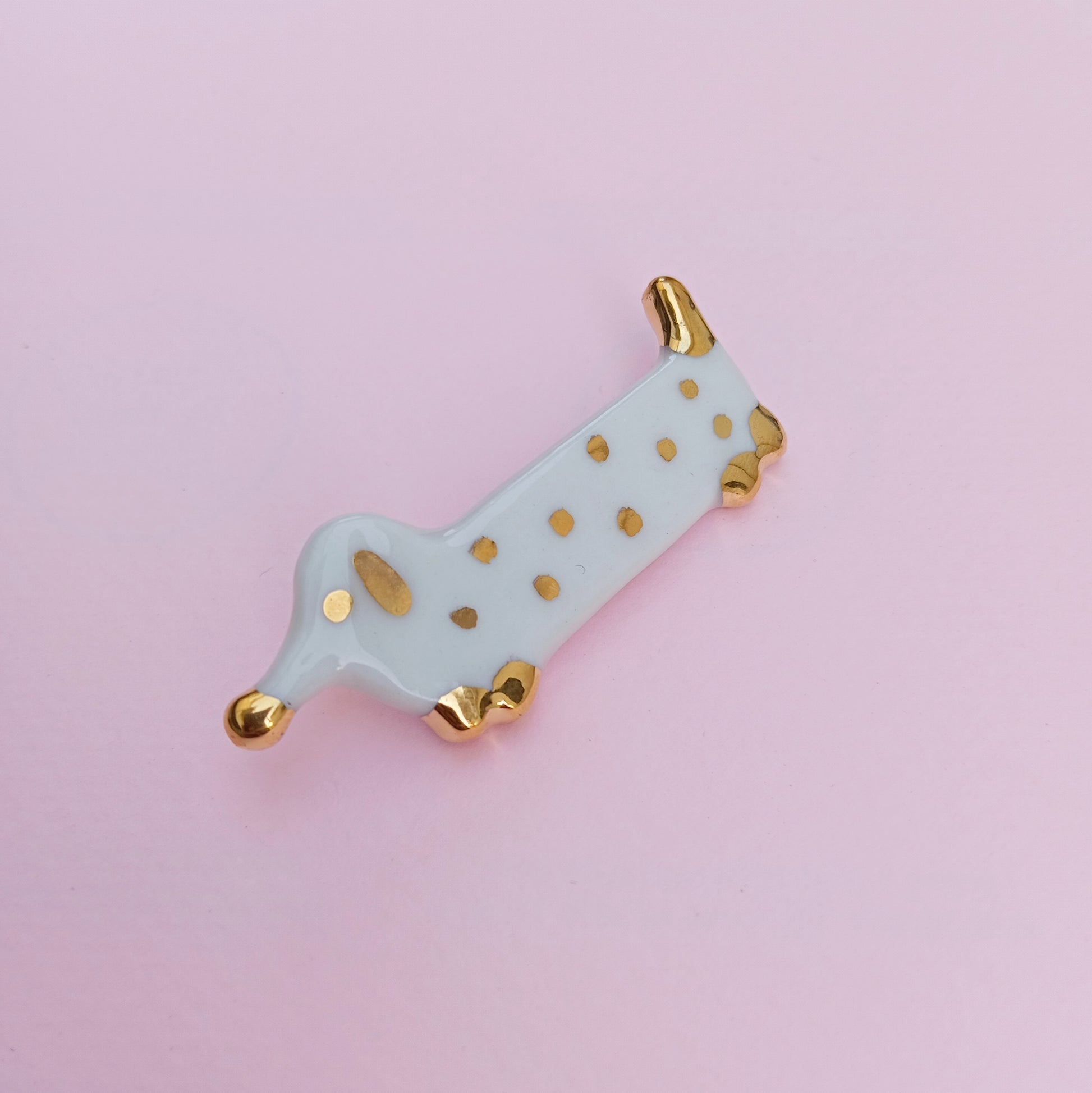 It was hand formed in porcelain, painted and fired twice up to temperature of 1240 C degrees. Additonally decorared with real gold lustre and fired for the third time.