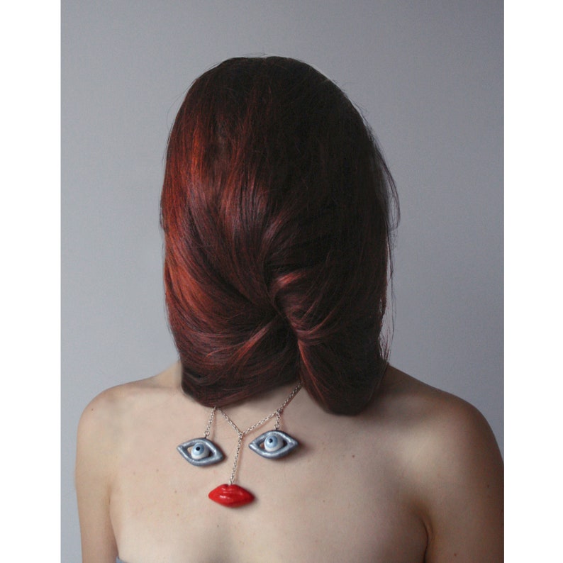 This surrealistic necklace will grab tones of attention! Eyes are the gateway to the soul, so what about having two gates of your own and two made of porcelain?