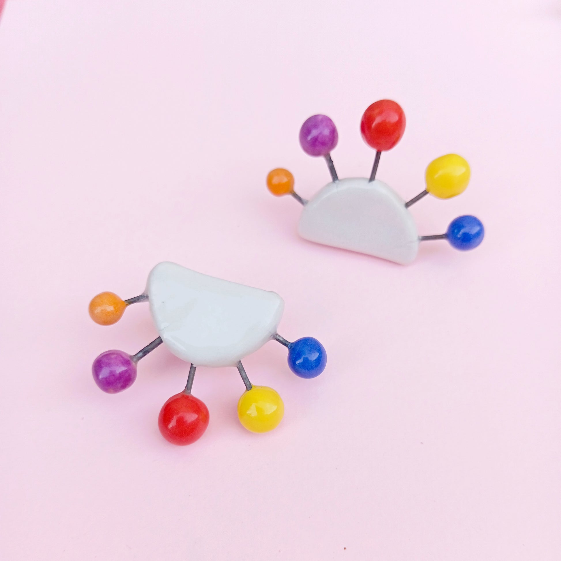They are handmade in porcelain and decorated with colorful balls, painted with underglazes, glazed with shiny transparent glaze and fired twice up to temperature of 1240 C degrees.
