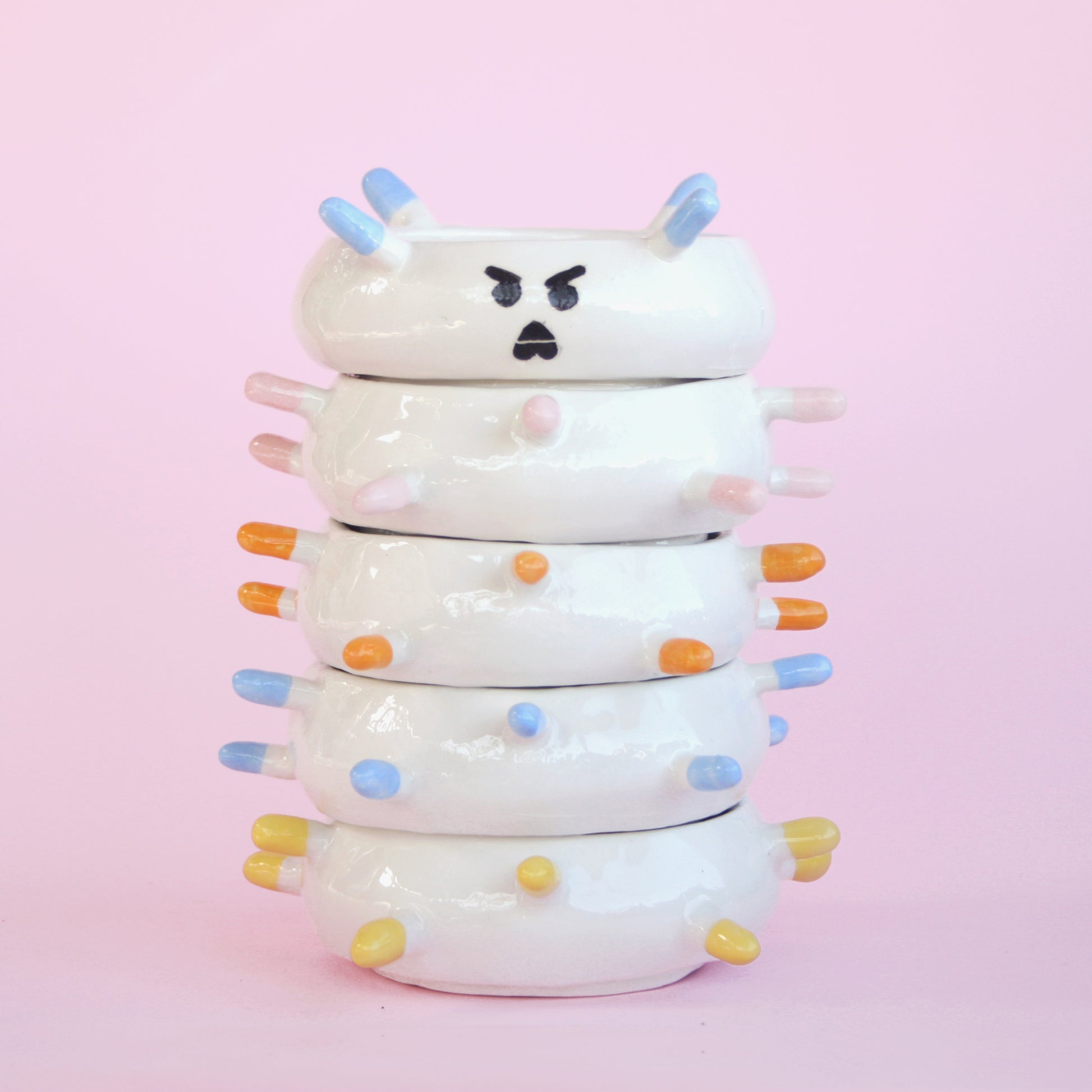 The set contains of 5 completly handcrafted ceramic bowls of capacity 150 ml and possiblilities to match them as you wish. Use the bowls as the dishware for tiny appetizers on your party or use them to store your precious things. Either way is fun and Mamuna Totem always look fancy and decorative.