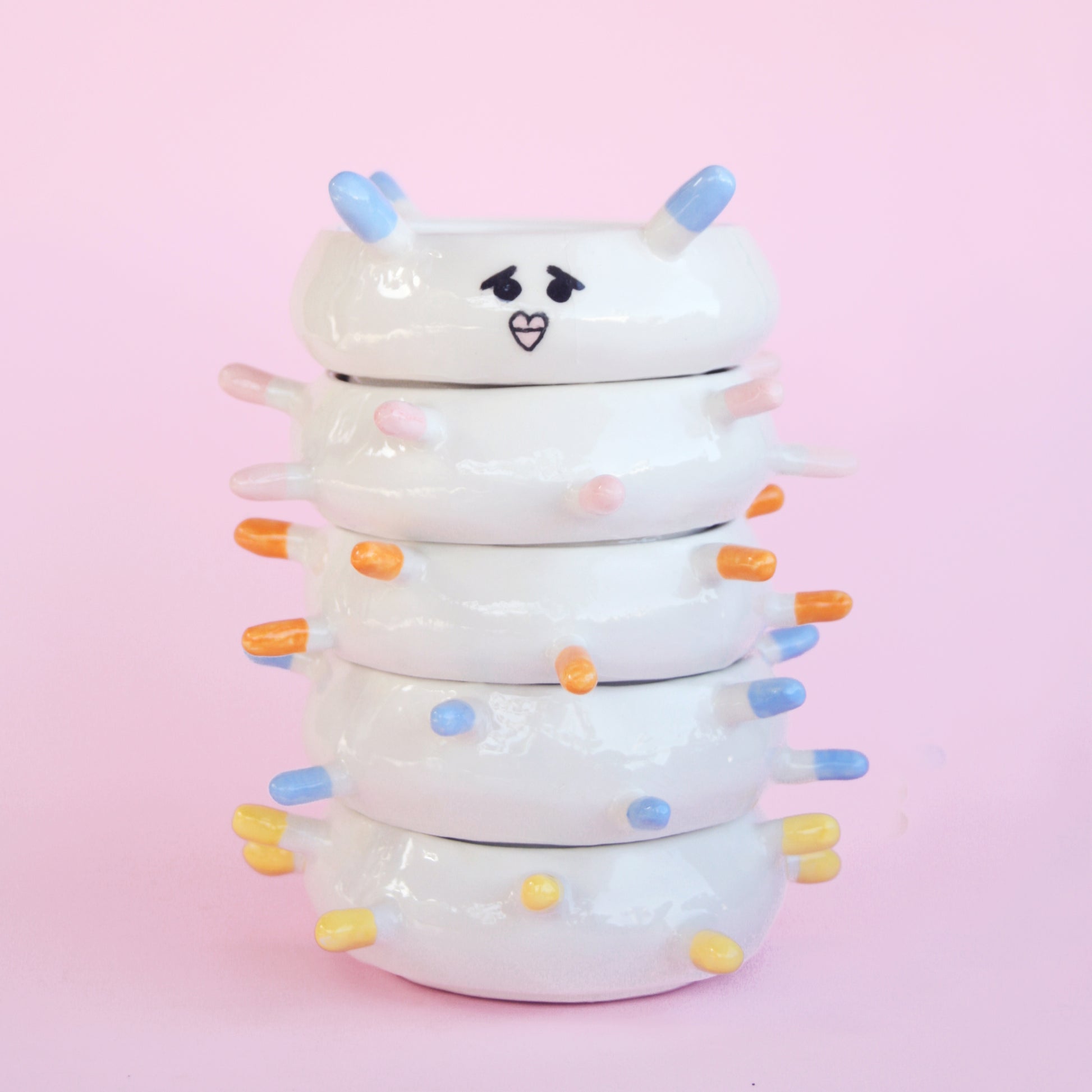 The ceramic bowls were hand formed, paitned with underglazes fired twice in the temperature of 1060 C degrees. The clay used is extra durable white clay suitable for plates and objects of everyday use.