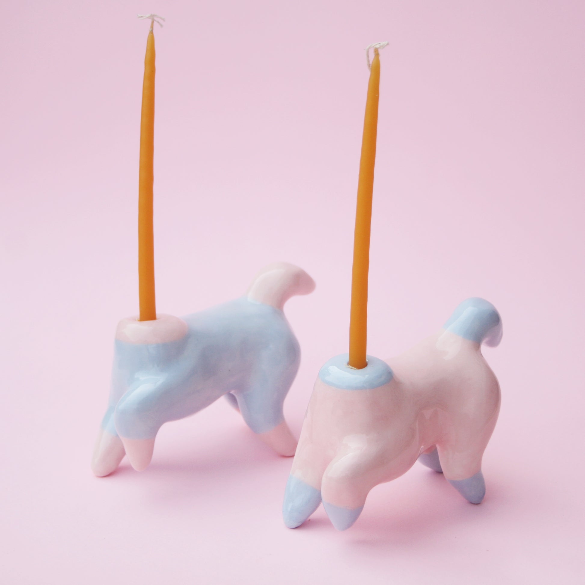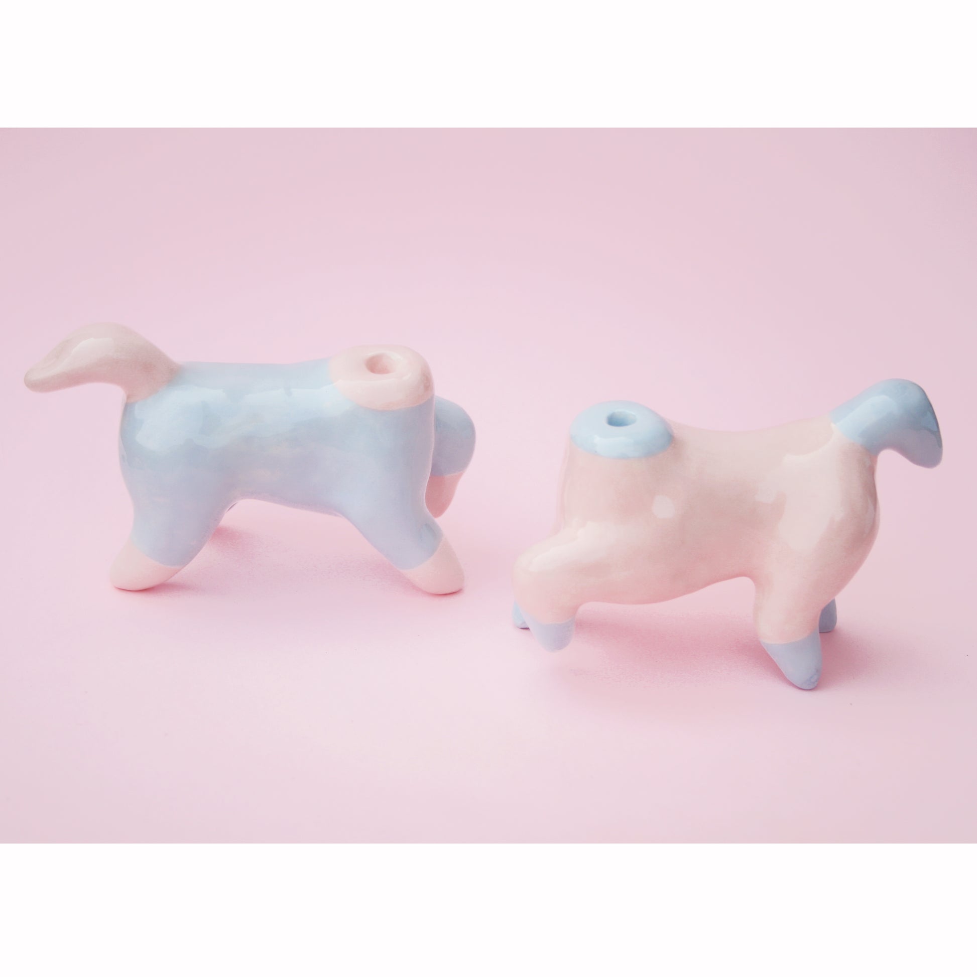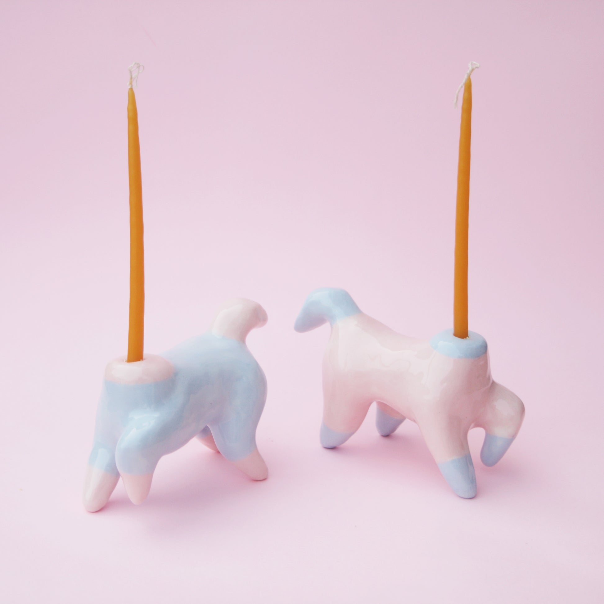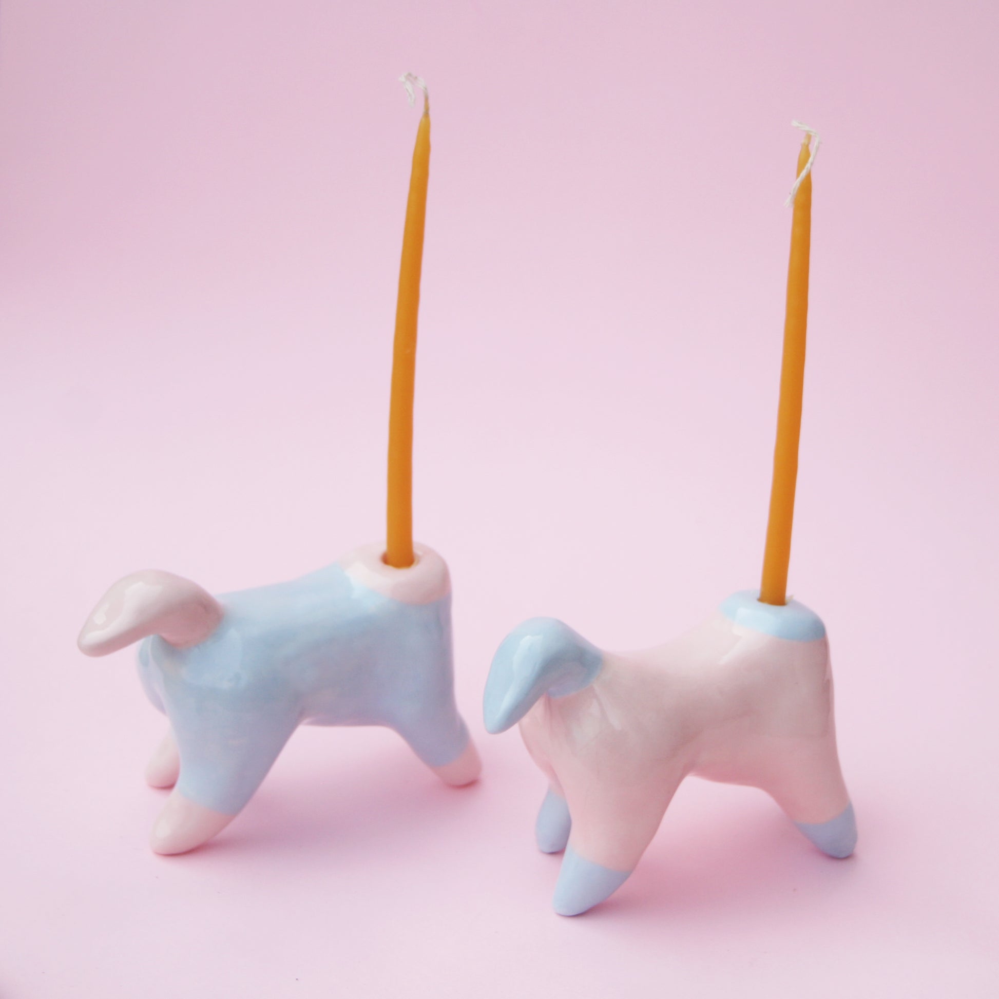 Ceramic Pony Horse candle holders in pastel pink and baby blue color.