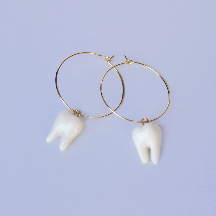 These teeth hoops are perfect! They're so light weight and are just enough of a conversation piece for someone to do a double take to see that they're teeth when walking by me!