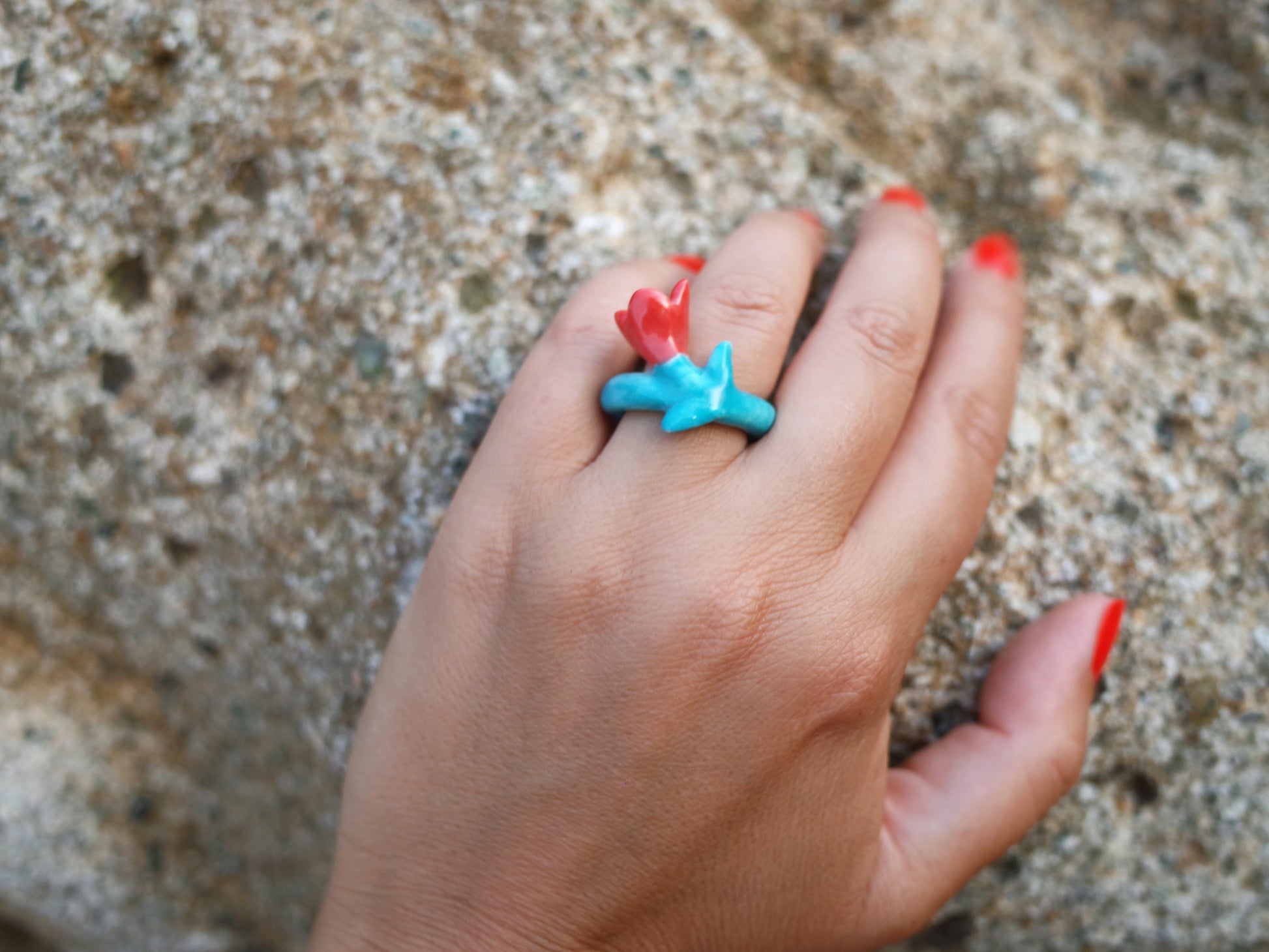The ring was hand formed in porcelain, painted, glazed and fired twice up to temperature of 1240 C degrees.