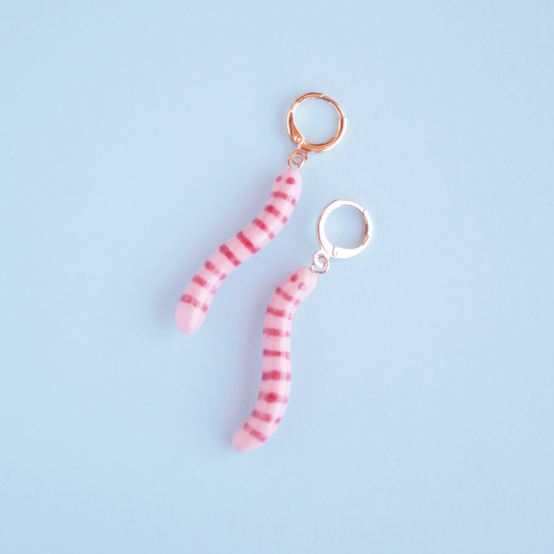 The worms were hand formed in porcelain, painted, glazed and fired twice up to temperature of 1240 C degrees.