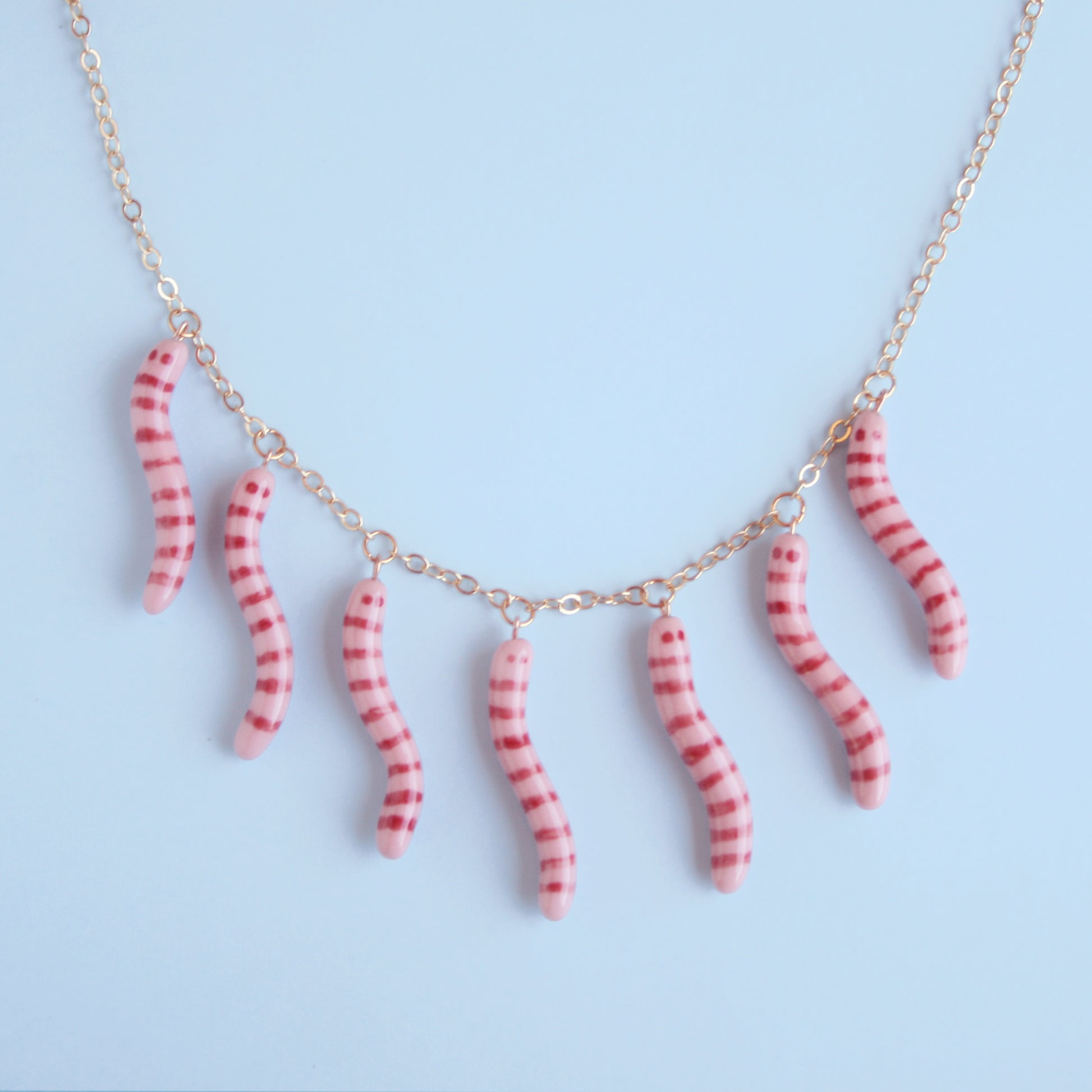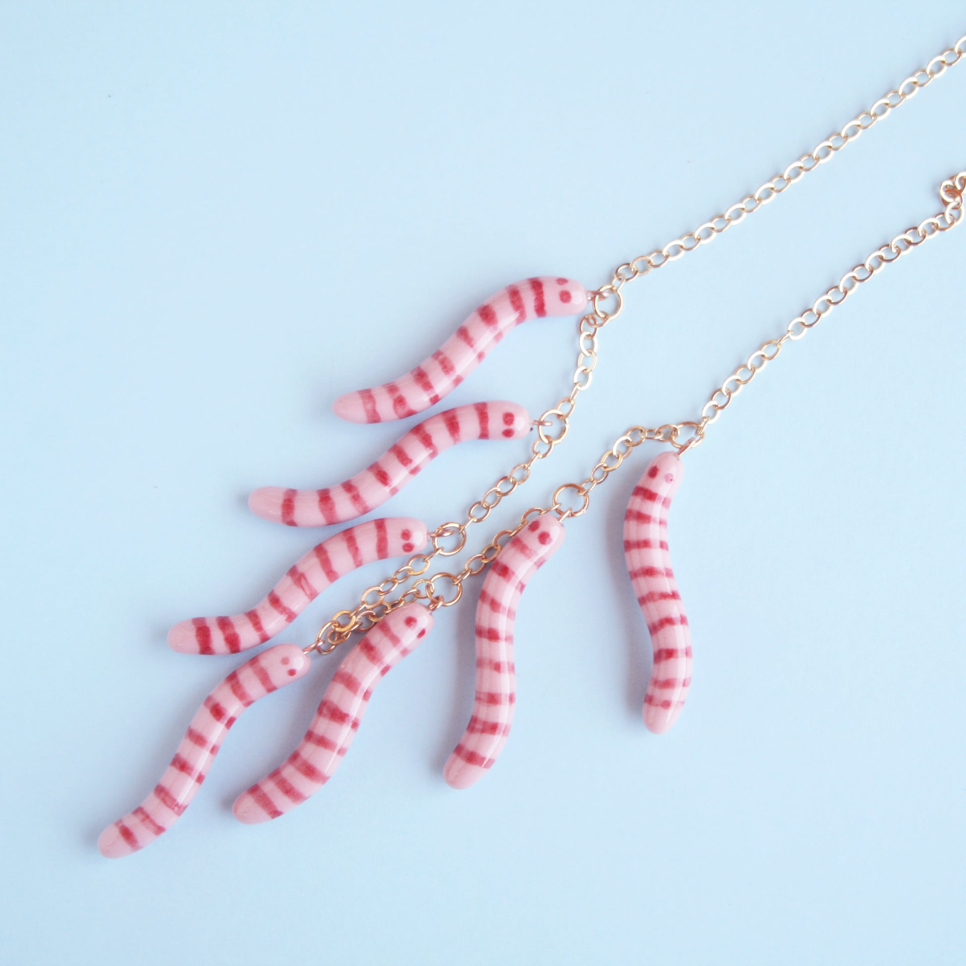 Every worm was hand formed in porcelain, painted , glazed and fired twice up to temperature of 1240 C degrees.